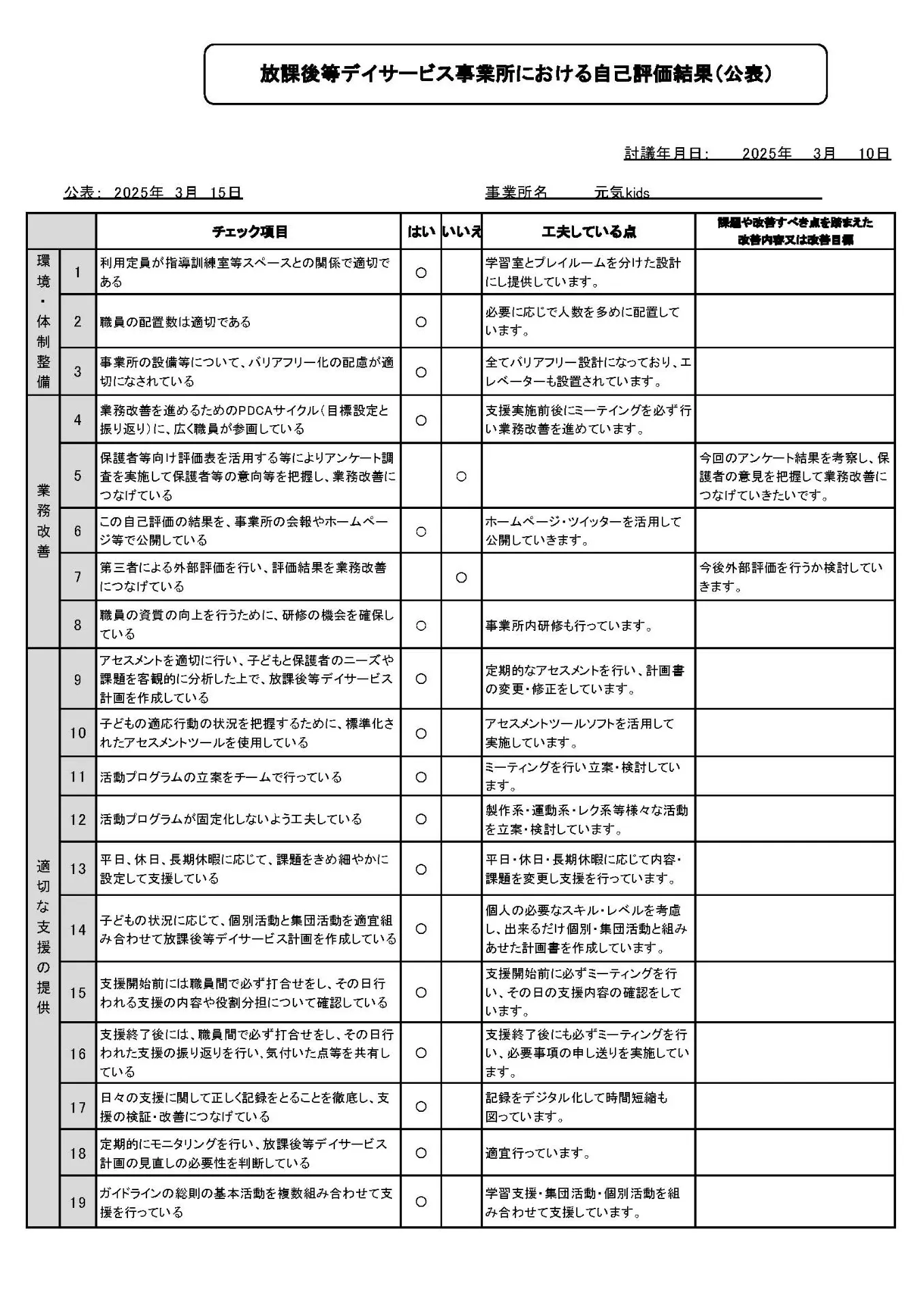 放課後等デイサービス事業所における自己評価結果 2025年